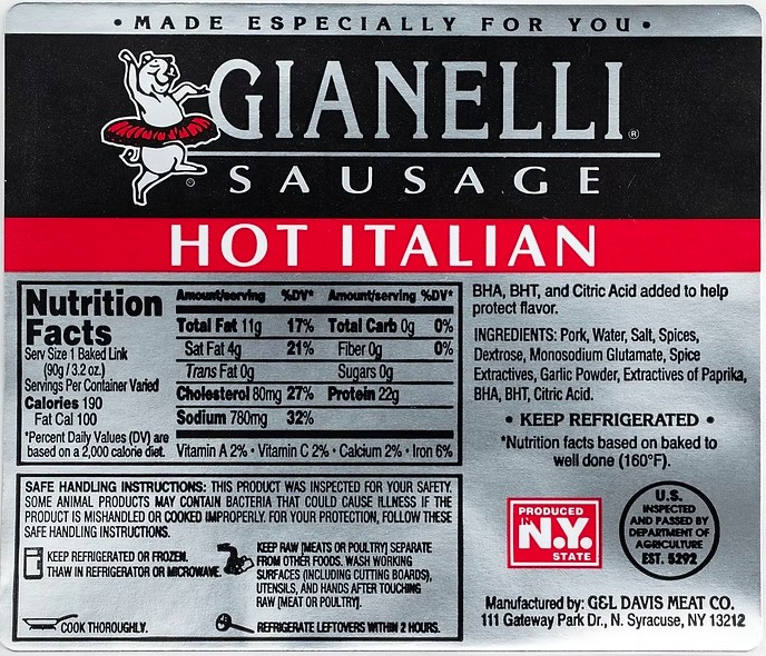 The classic Italian hot sausage flavor profile. Lean, fresh pork mixed with Gianelli’s signature blend of Italian herbs and spices. Each package has (4) 7” links, approx. 1 lb.